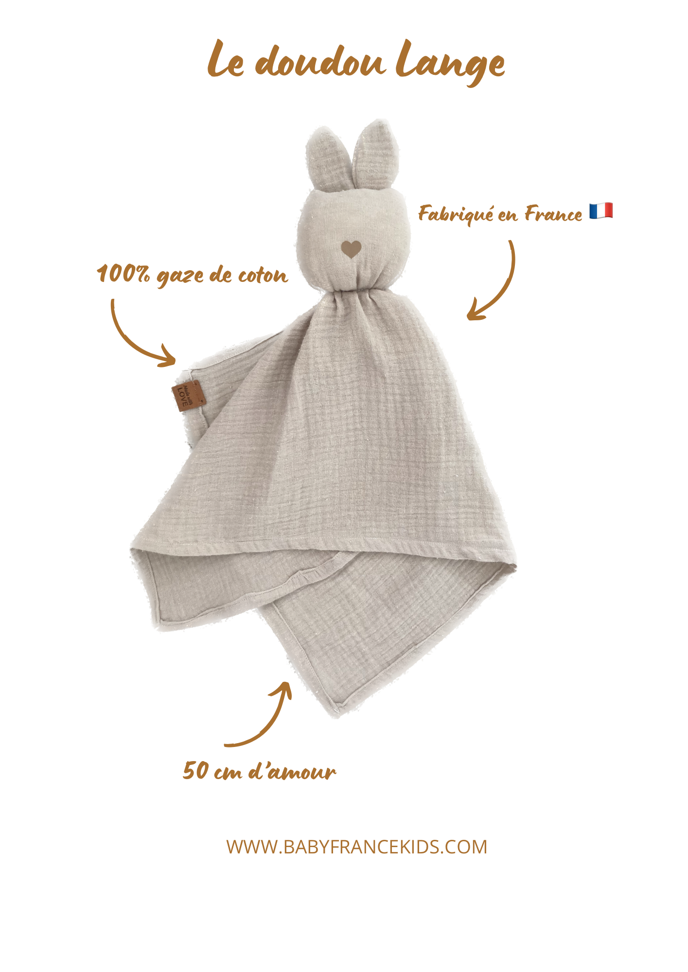 Ce joli doudou en gaze de coton est l’ami parfait de bébé !