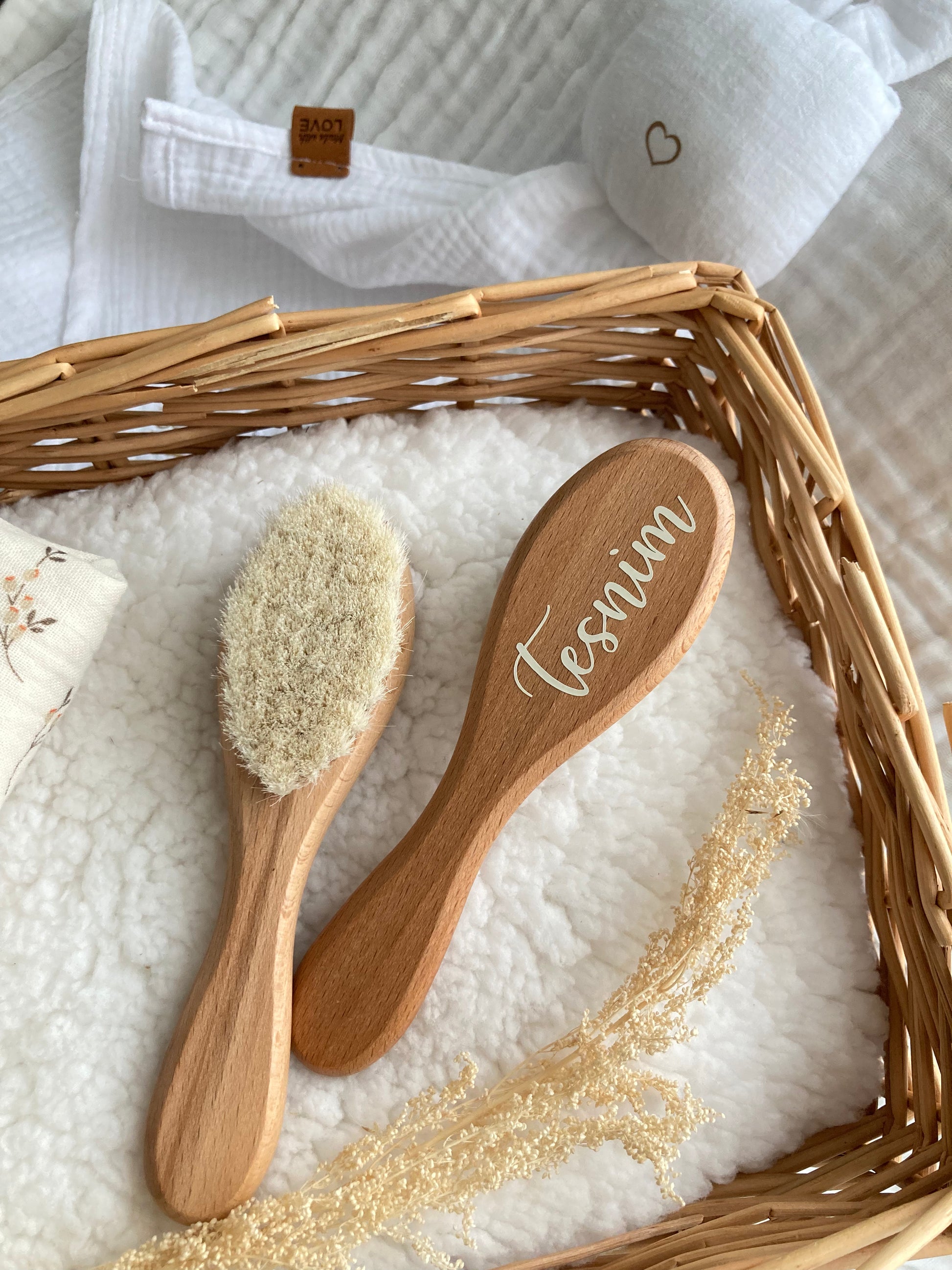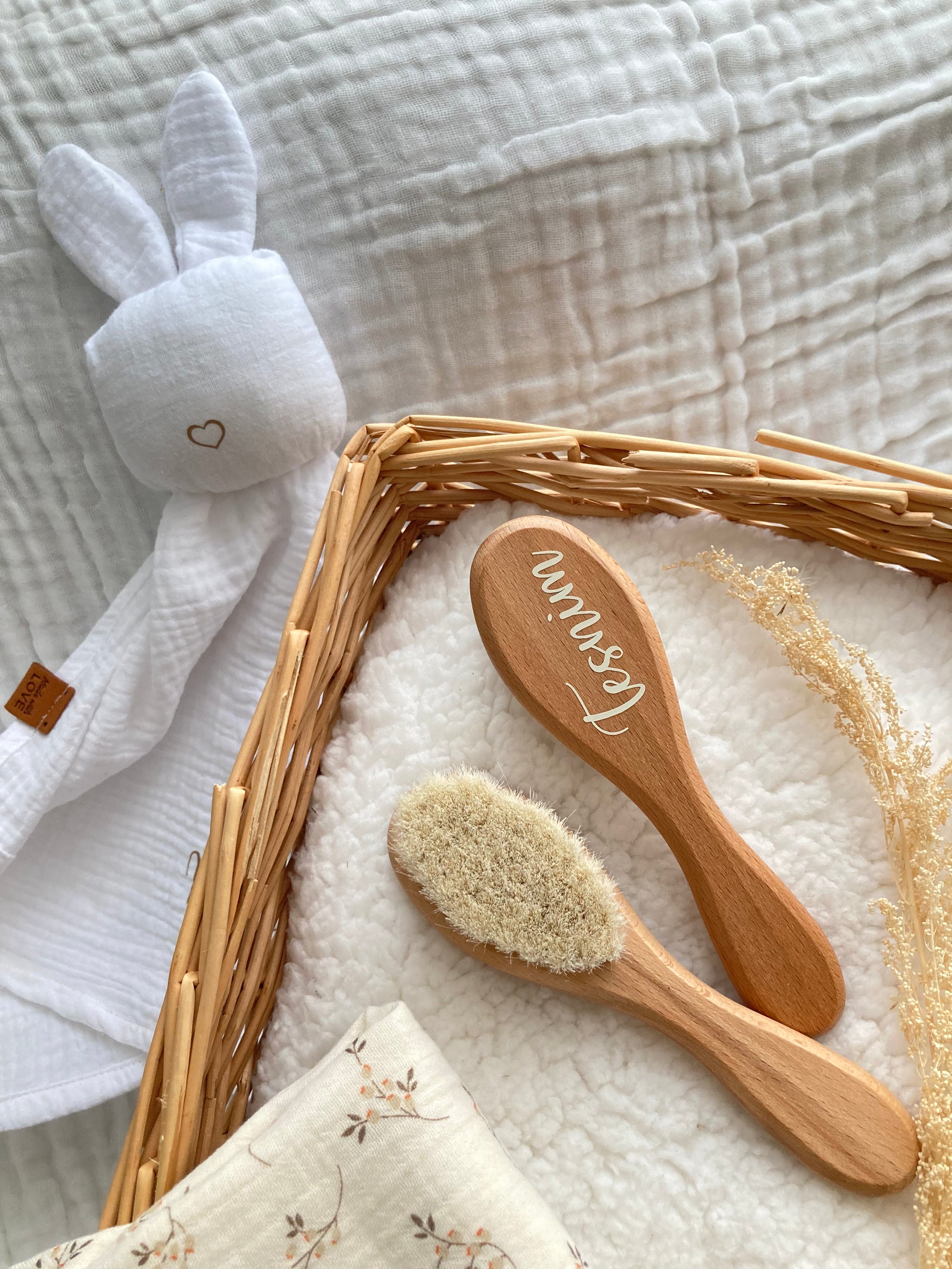 La brosse à cheveux pour bébé est personnalisable pour en faire un joli accessoire unique lors de la mise en beauté de Bebe.